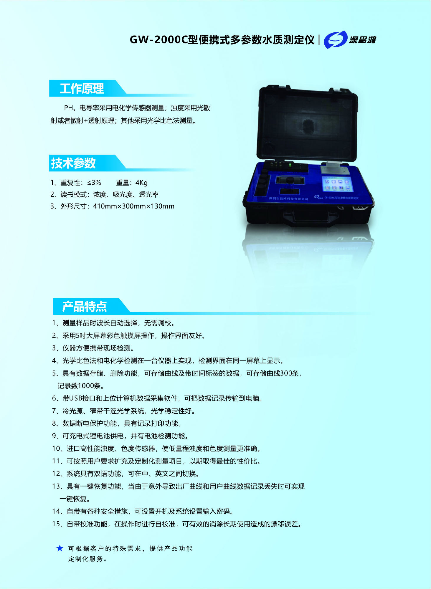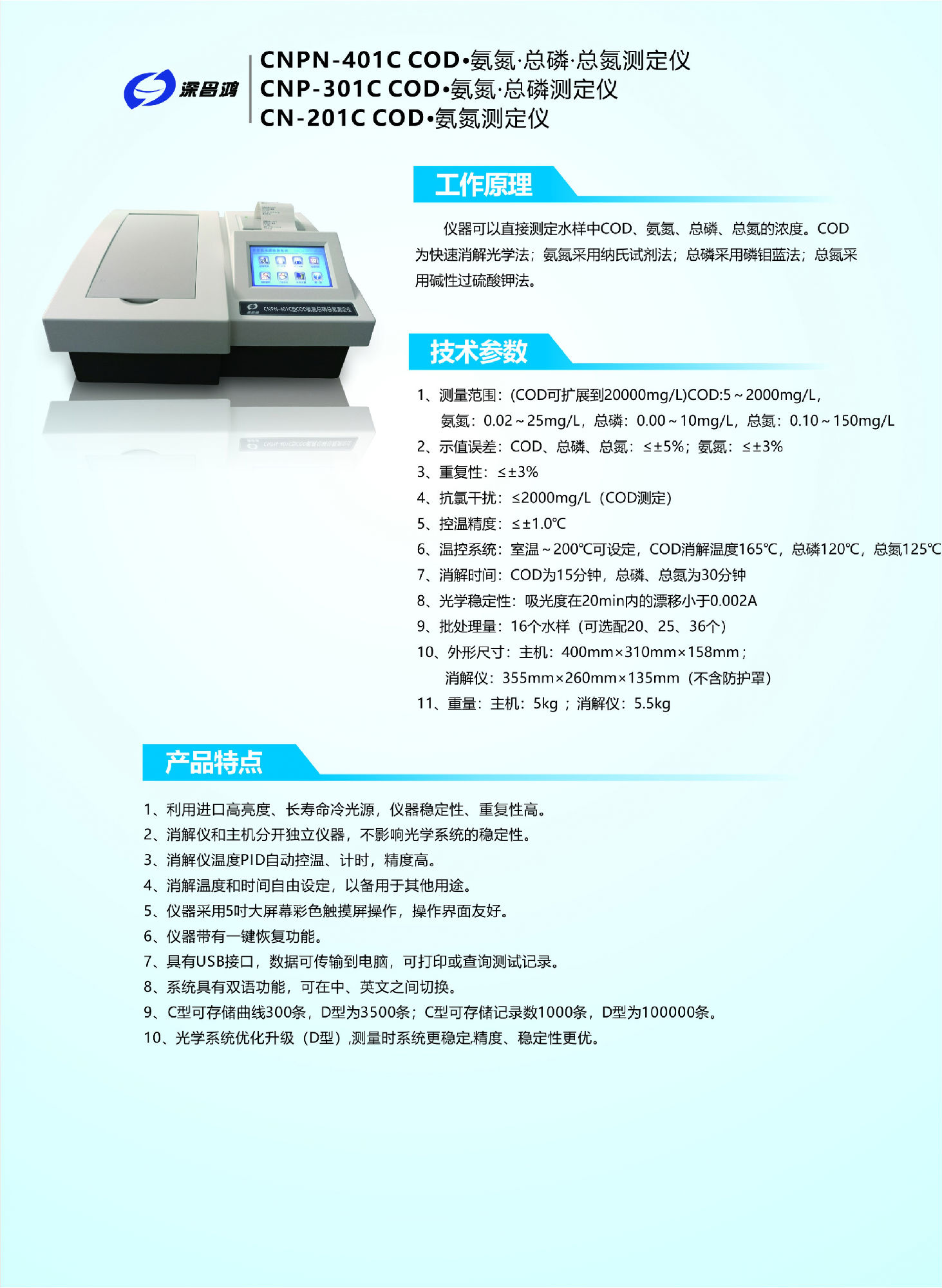 多參數(shù)水質(zhì)測定儀、便攜式多參數(shù)水質(zhì)測定儀、COD·氨氮·總磷·總氮測定儀、COD·氨氮·總磷測定儀、COD·氨氮測定儀、總磷測定儀、總氮測定儀等多款升級新的產(chǎn)品。
