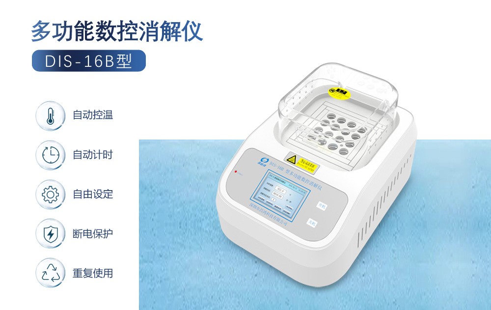 本儀器能實現(xiàn)地表水、工業(yè)廢水、生活污水等各種水樣中的COD、總磷、總氮及總鉻等需要加熱過程的化學分析消解功能??赏瑫r放置16個φ16mm的反應管,根據(jù)設定的消解溫度和消解時間自動控溫。