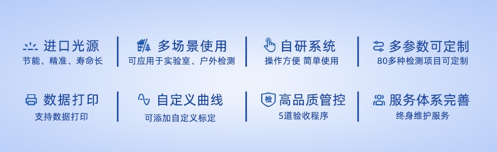 測定項目 | COD、氨氮、總磷、總氮、銅、鐵、鎳、六價鉻、磷酸鹽、亞硝酸鹽、PH、余氯等80多種參數(shù),用戶可根據(jù)需要定制參數(shù)。 | ||