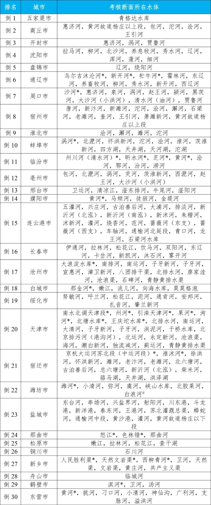 四、地級(jí)及以上城市國(guó)家地表水考核斷面排名